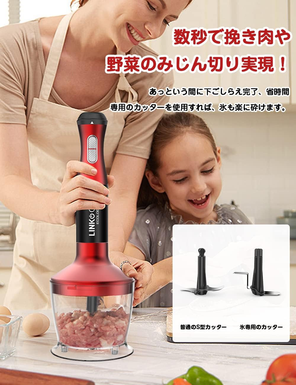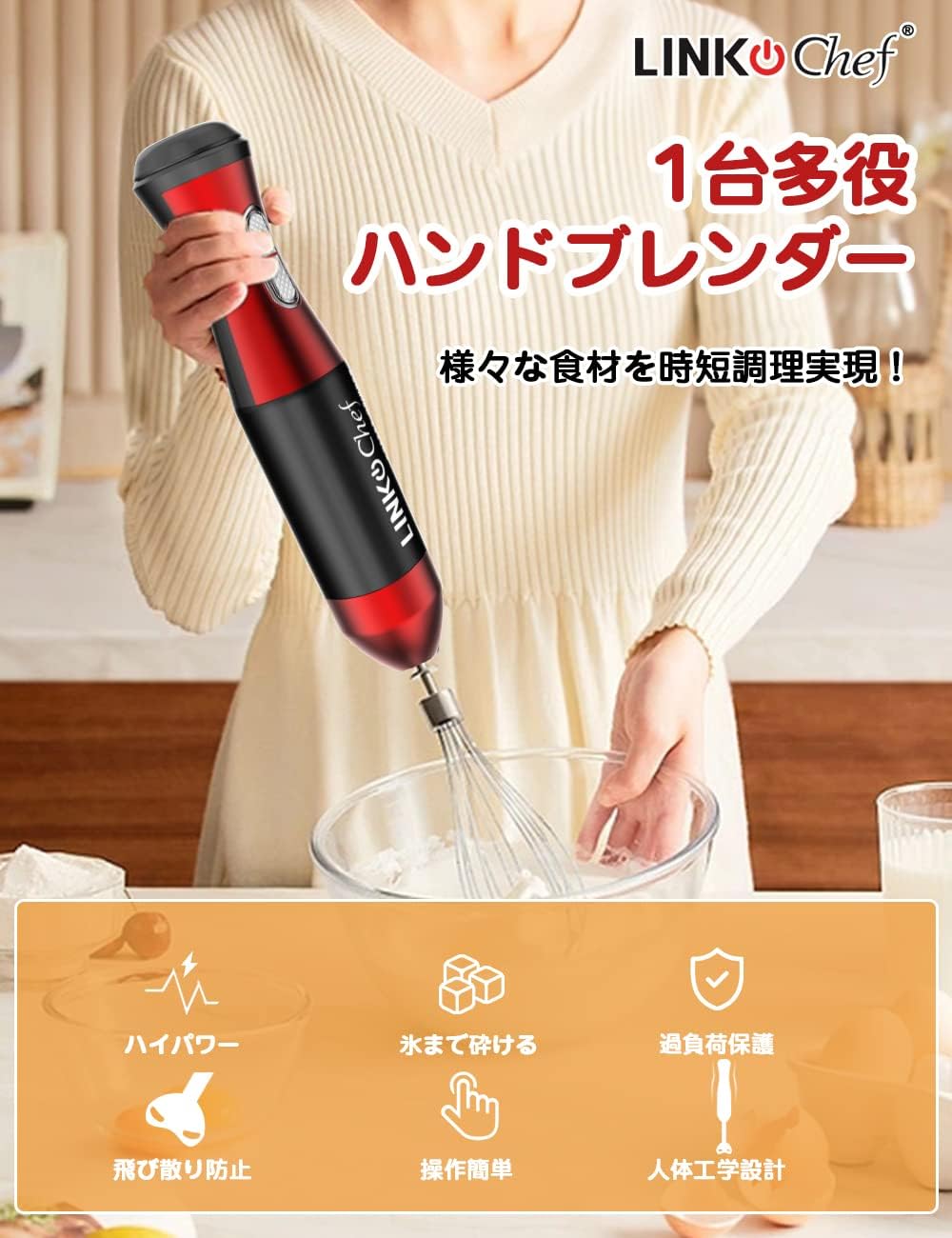 ハンドミキサー フードプロセッサー 離乳食 1台5役 (混ぜる つぶす 刻む 砕く 泡立てる) 氷対応 電動 泡立て器