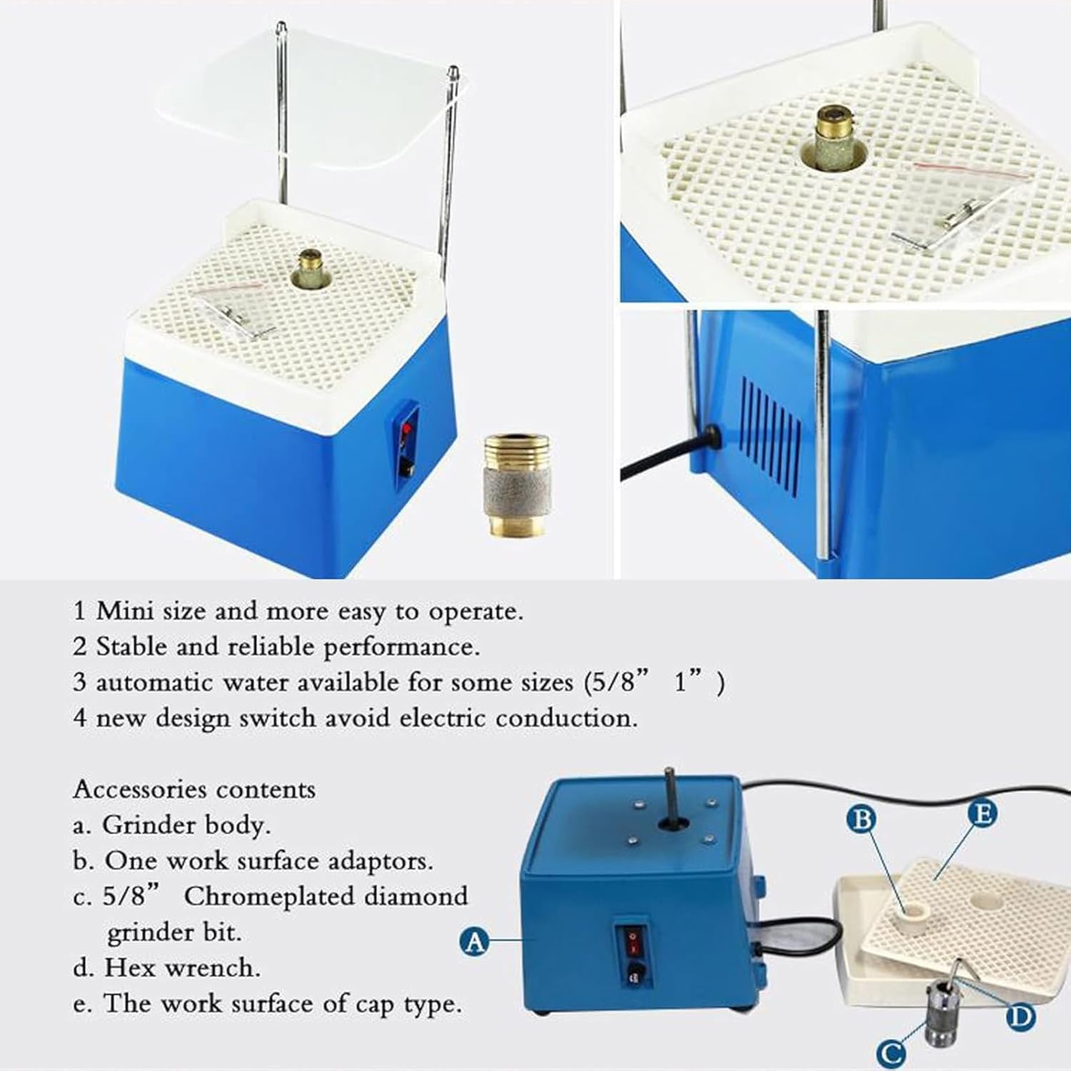 5/8インチおよび1インチダイヤモンドグラインダービットとバッフル付きポータブルミニガラスグラインダー