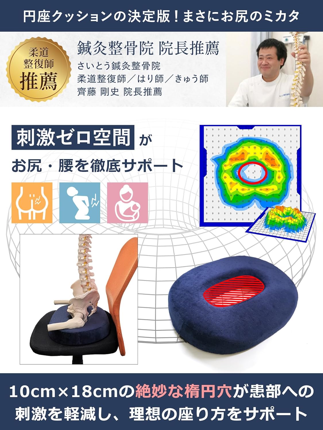 全体の硬さが安定し体圧をまんべんなく分散させ、お尻への負担を抑えてくれます