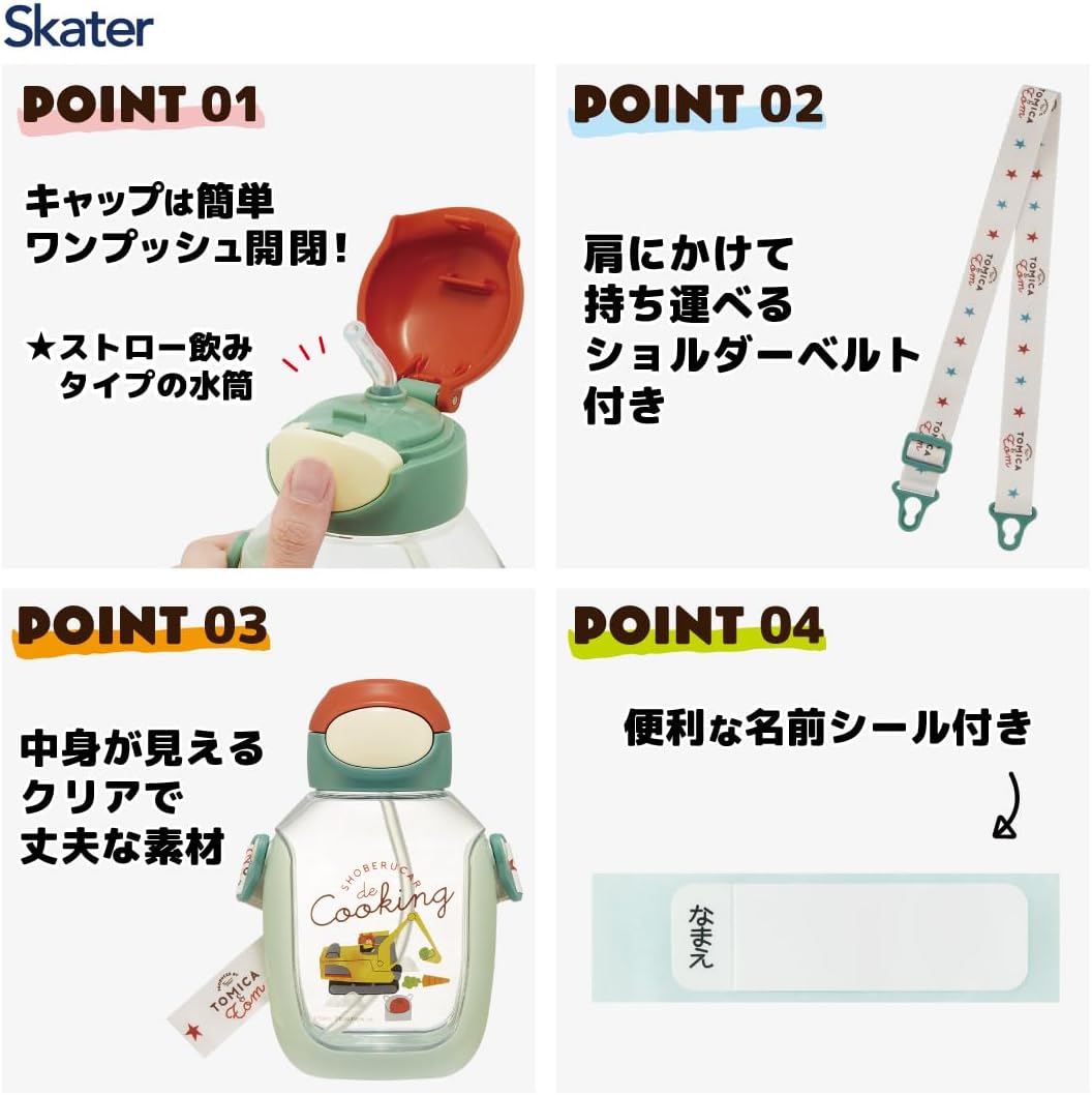 ストロー水筒 ワンプッシュ 子供用 トミカとトム TOMICA&TOM PDSH6DX-A