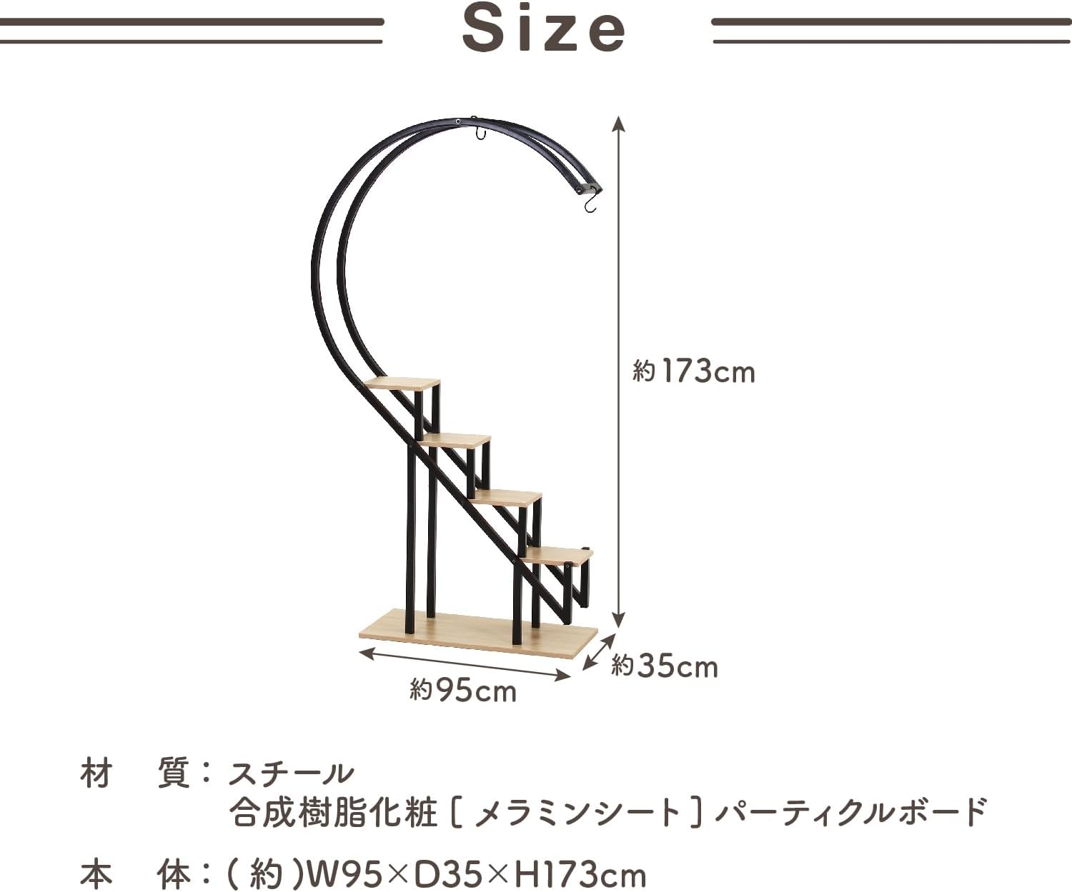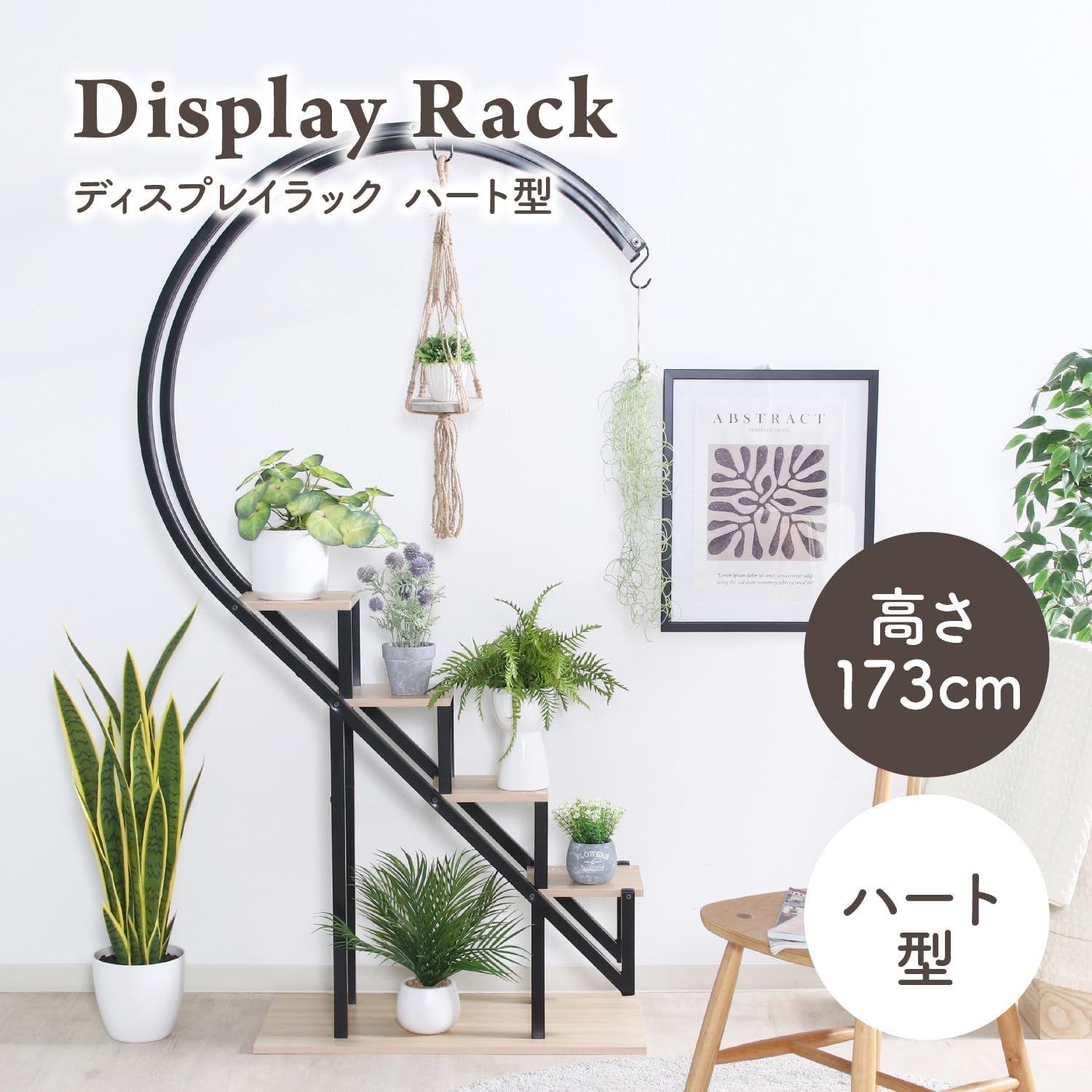 ハンギング 屋内 ディスプレイラック 4段 幅95×奥行35×高さ173cm ホワイト 生活雑貨 小物収納 ハート型 63758