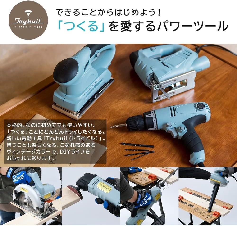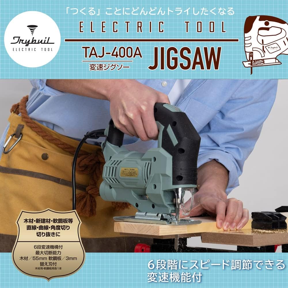 木工用ブレード付属 ロックボタン DIY 工具 電動工具 切断工具 TRYBUILシリーズ TAJ-400A ライトブルー