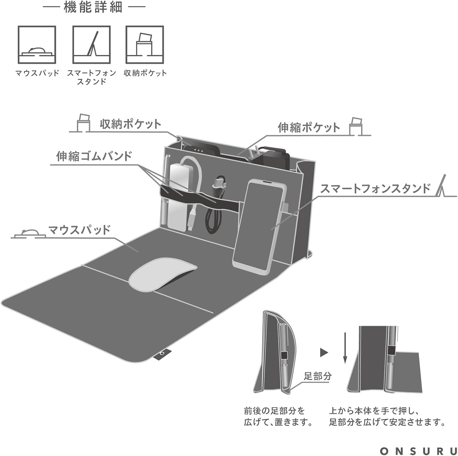 ONSURU マウスパッド付きスタンドポーチ