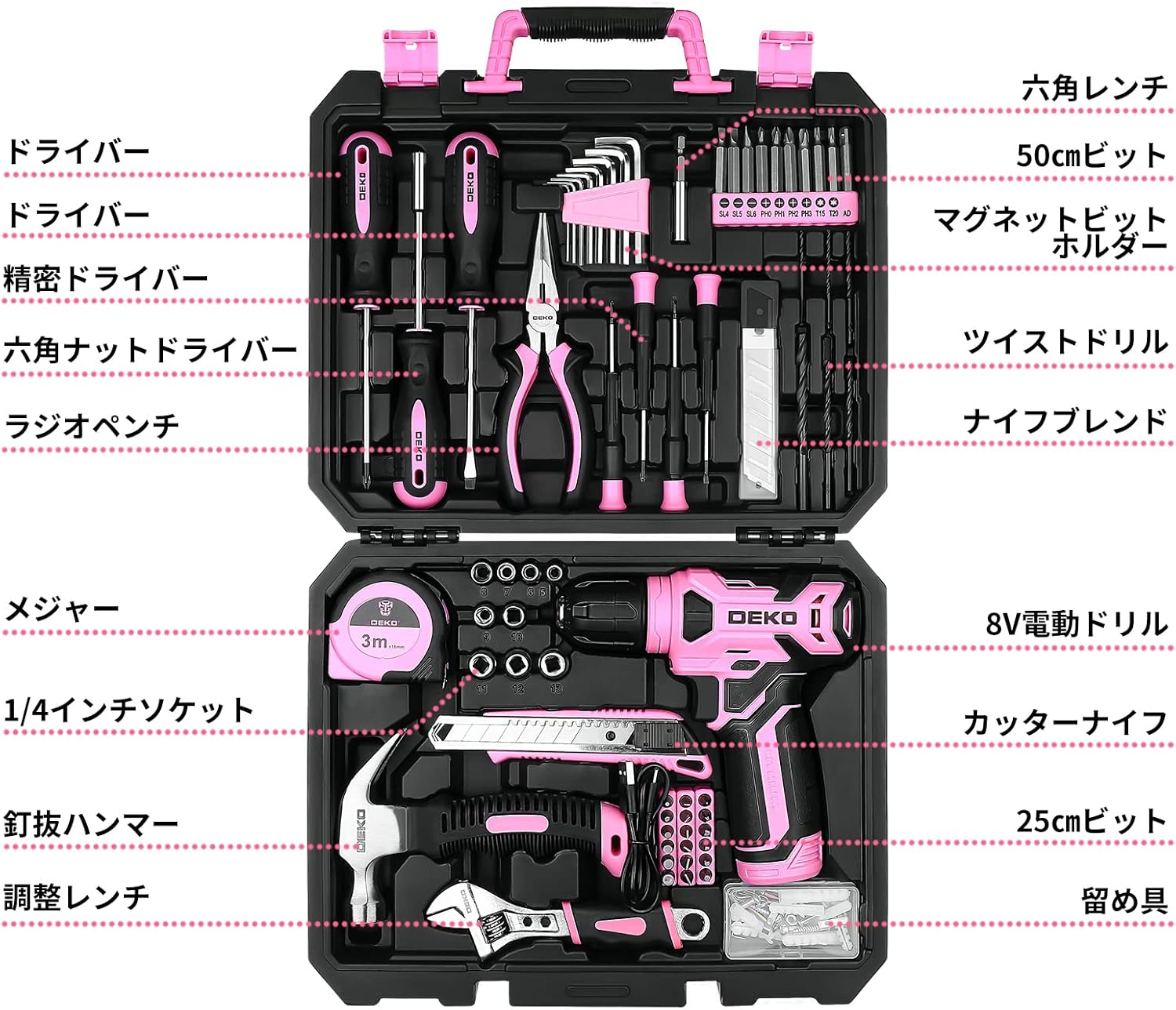 【8V電動ドリル付き】 工具セット 126点組 DY0314