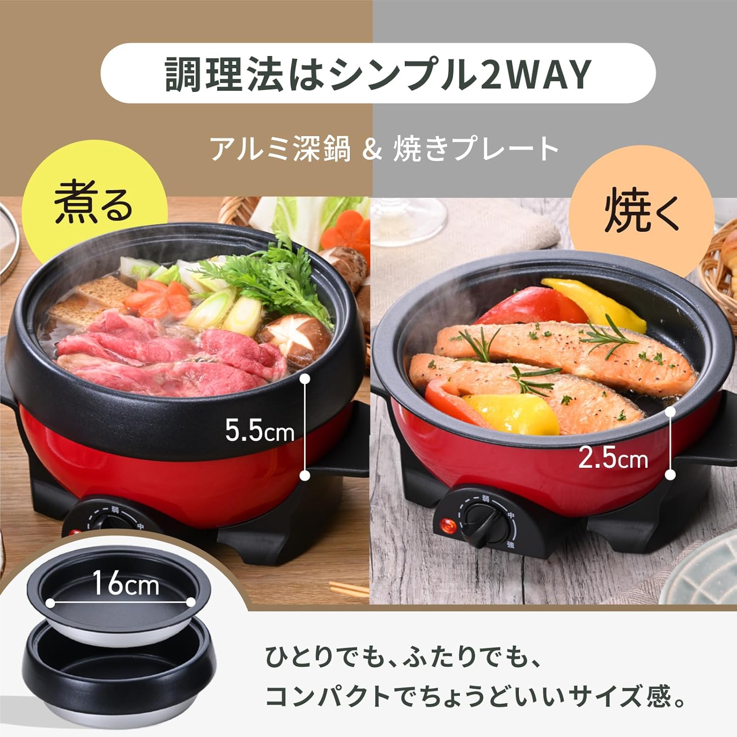 1人用 1台2役 「煮る」「 焼く」 小型 一人暮らし 深鍋 おしゃれ 着脱式 丸洗い フッ素加工