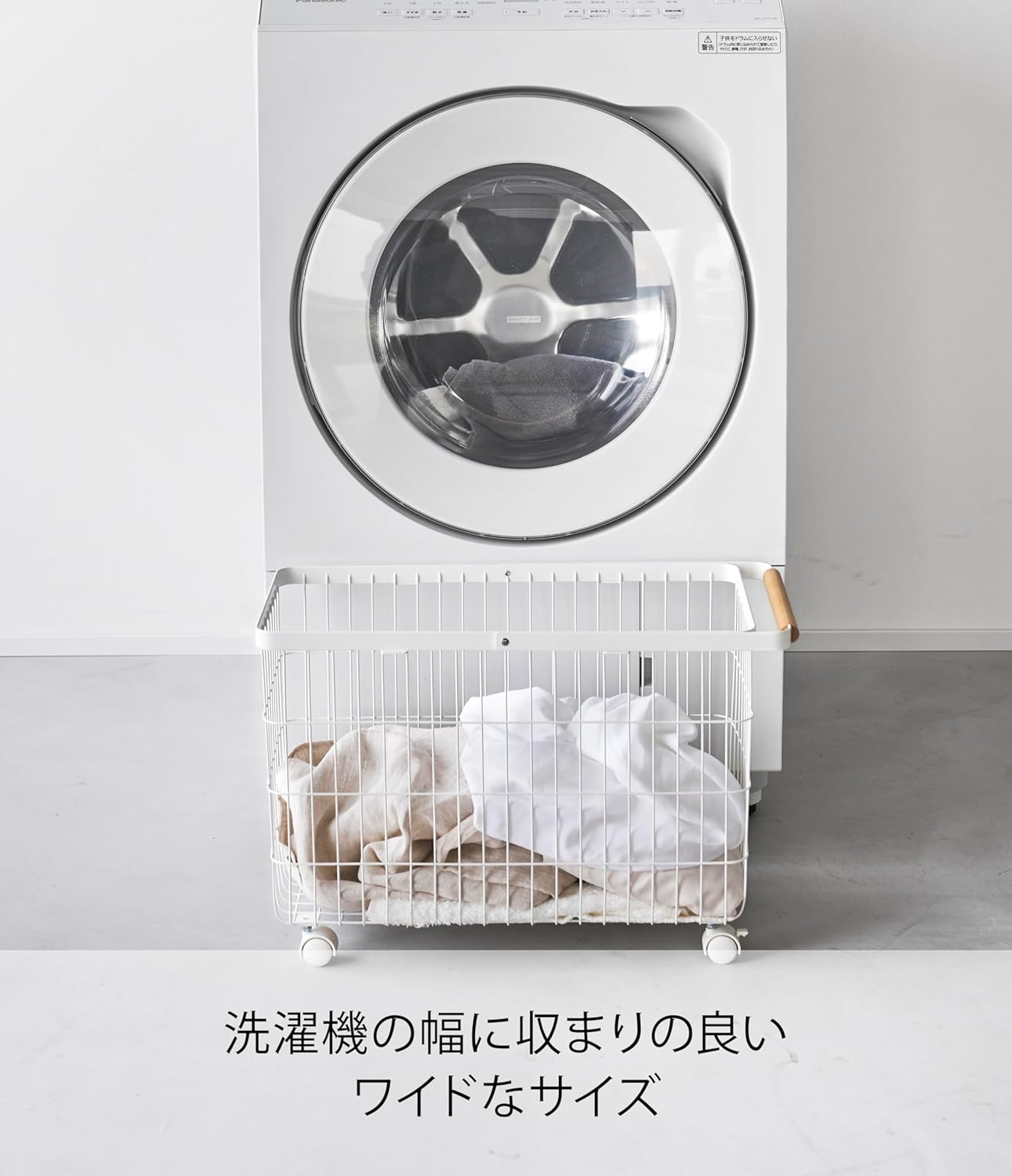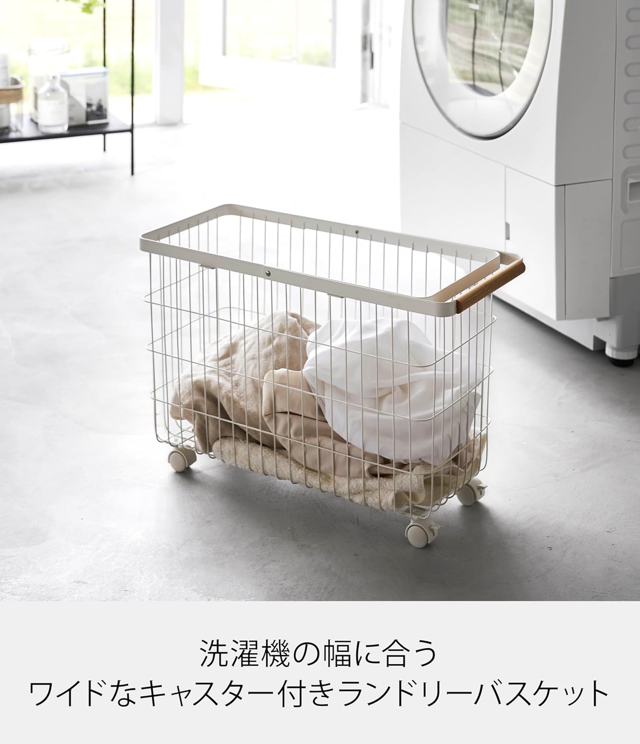 キャスター付き ワイド & ロー ホワイト 約W55.5×D25×H37.5cm(ハンドル使用時:約H66cm) トスカ tosca 出し入れスムーズ 高さが丁度いい 洗濯かご 6629