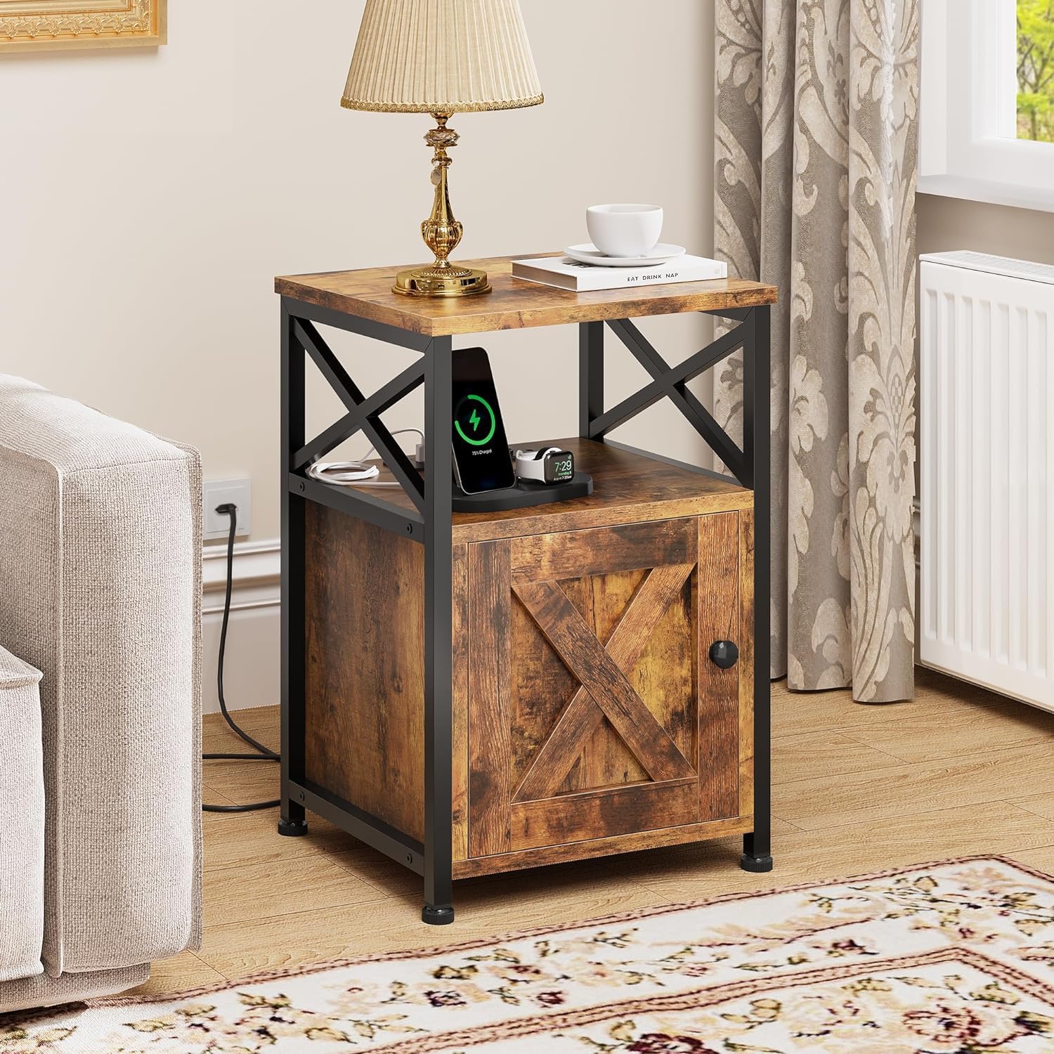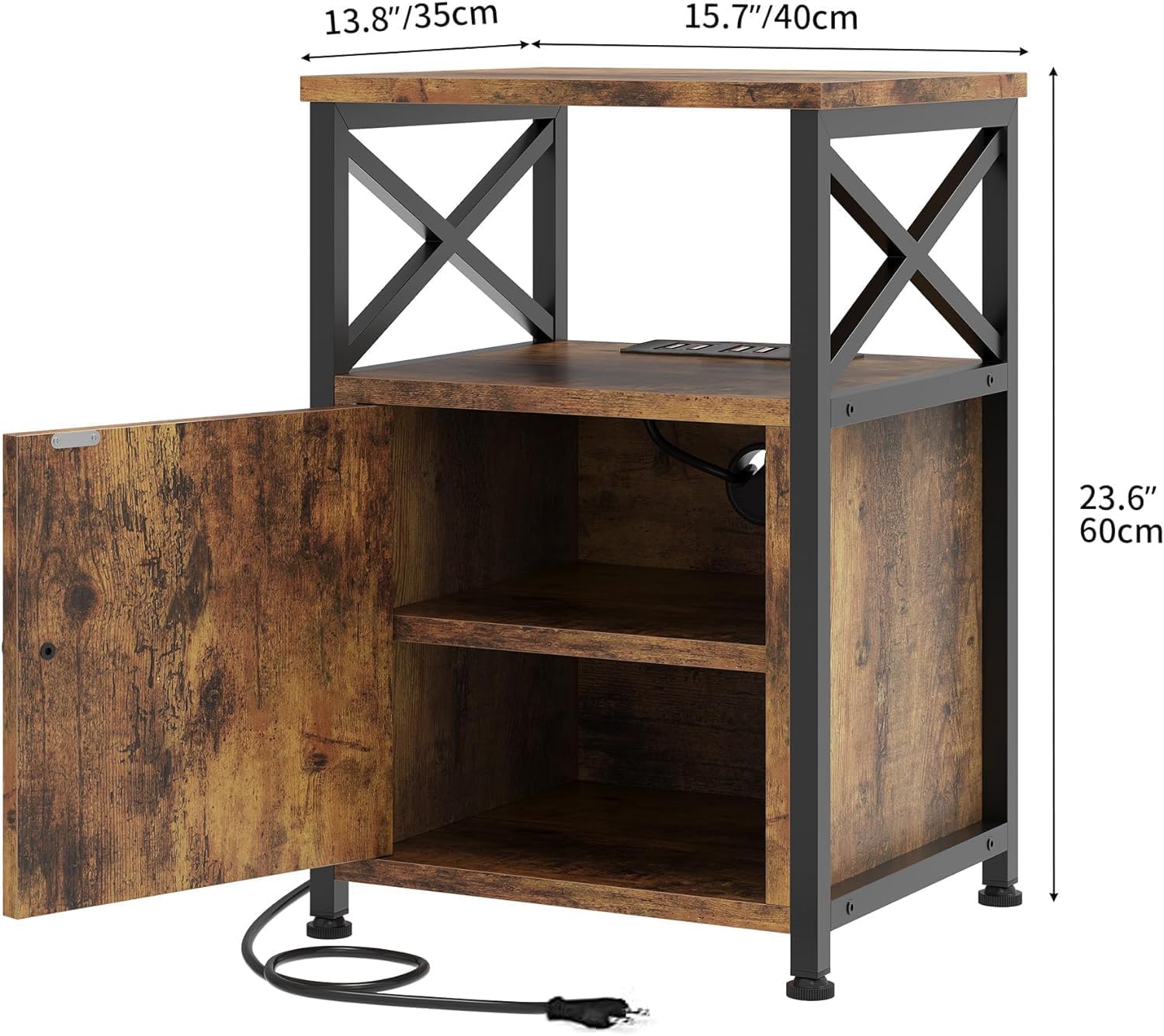 ソケット付きベッドサイドテーブル