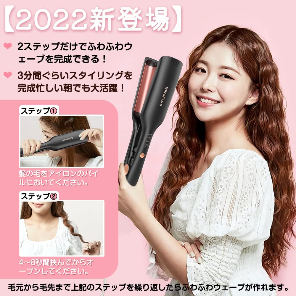 ウェーブアイロン 26? 挟むだけで可愛い カールアイロン 実現 160℃〜220℃ 千万級マイナスイオン吹出 やけど防止