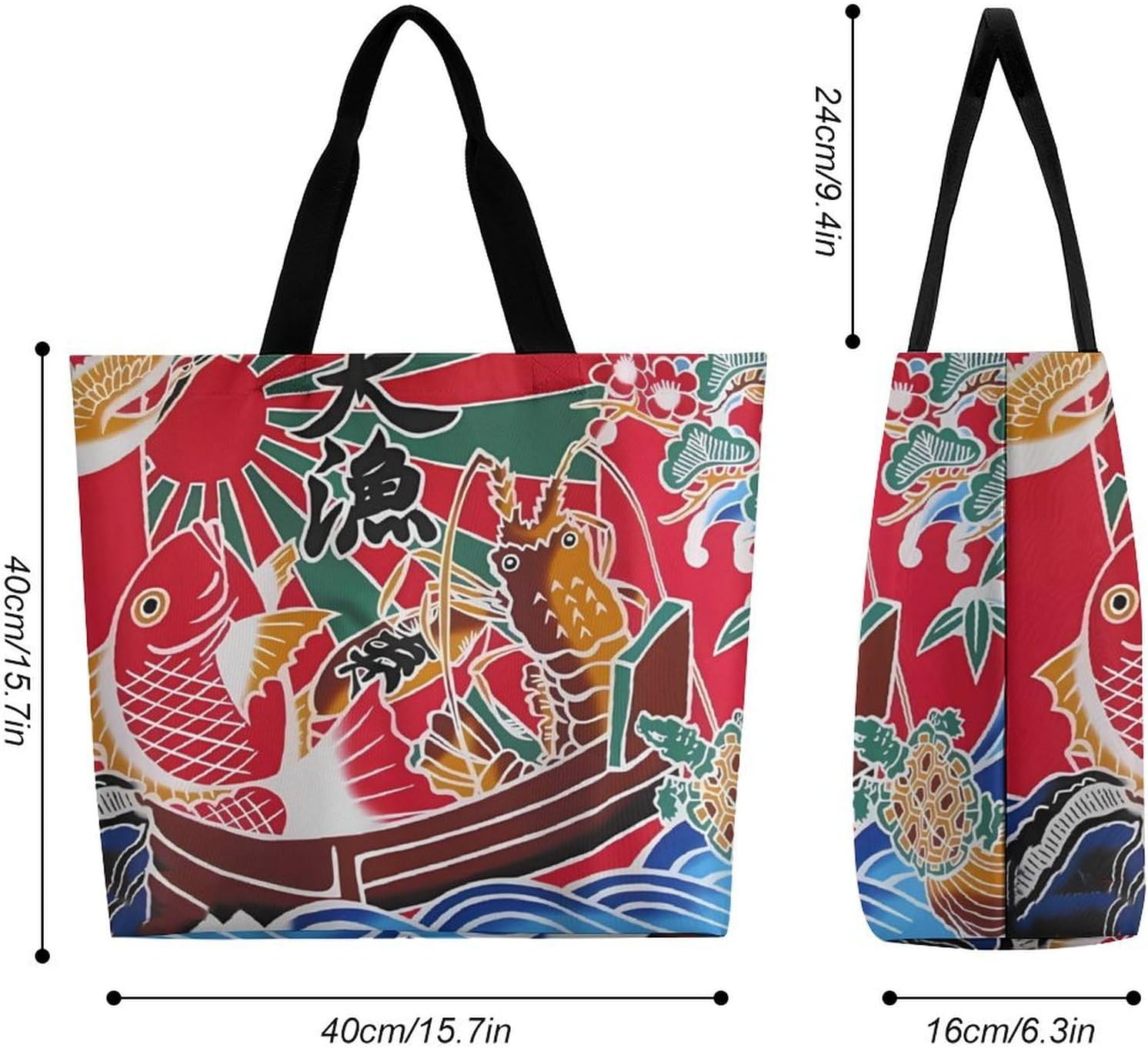 手提げ軽量バッグ 肩掛けショッピングバッグ 撥水 大容量 生活雑貨収納袋 コンビニ買い物バッグ 大漁旗 (2) 通学 A4