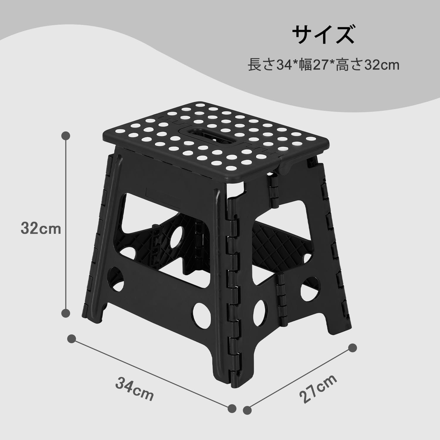 ステップ 脚立 幅34x奥行27x高さ32cm ブラック フォールディング スツール チェア コンパクト アウトドア/室内 収納便利