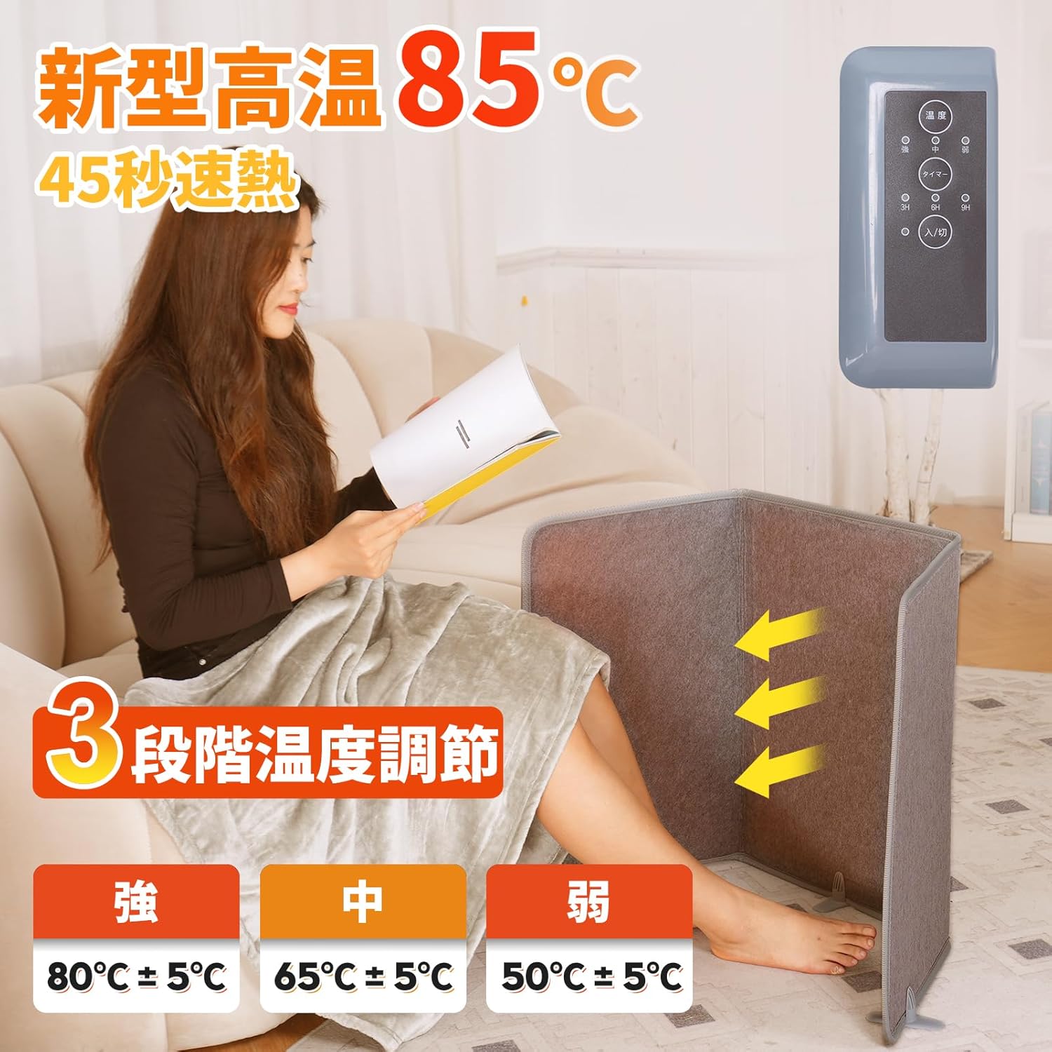 高温版85℃ デスクヒーター 足元ヒーター 3/6/9時間タイマー