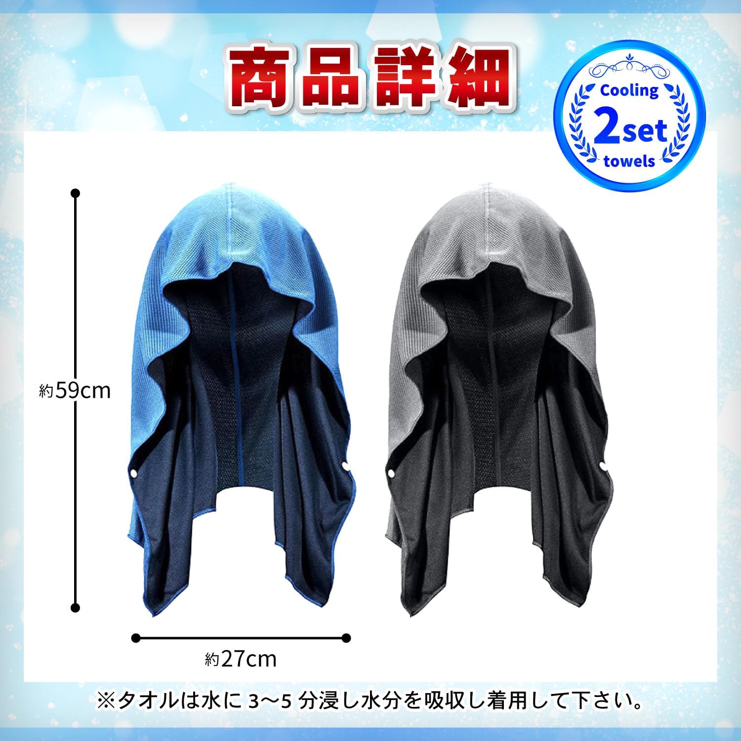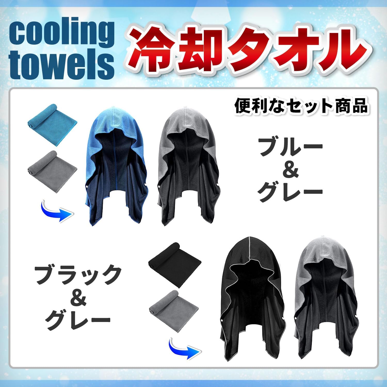 冷感タオル 首 冷感バンダナ クールタオル 熱中症対策 グッズ 暑さ対策グッズ 生活雑貨 2枚セット (ブラック グレー)