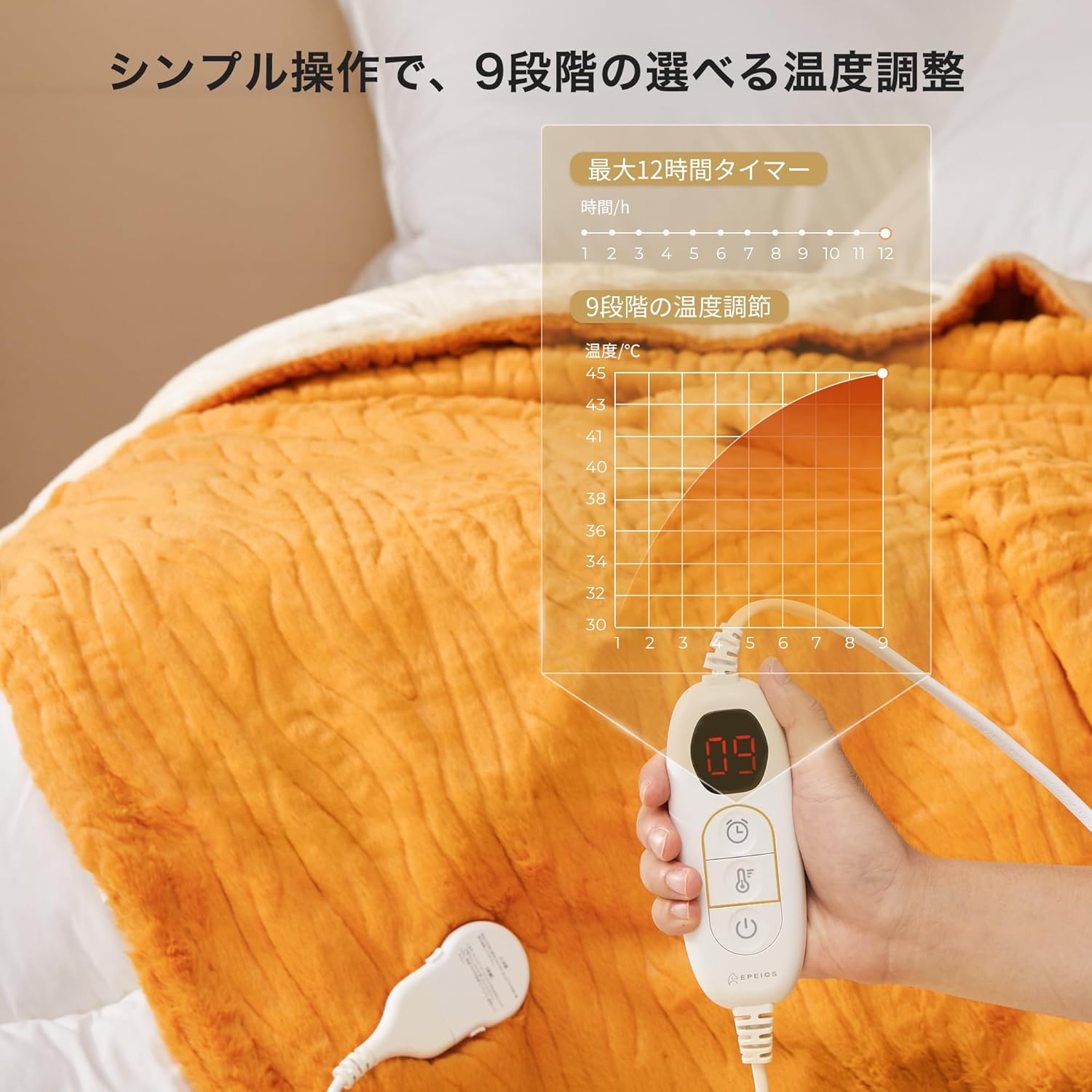 1-12時間タイマー付き 洗える 9段階温度調節 ぬいぐるみ生地