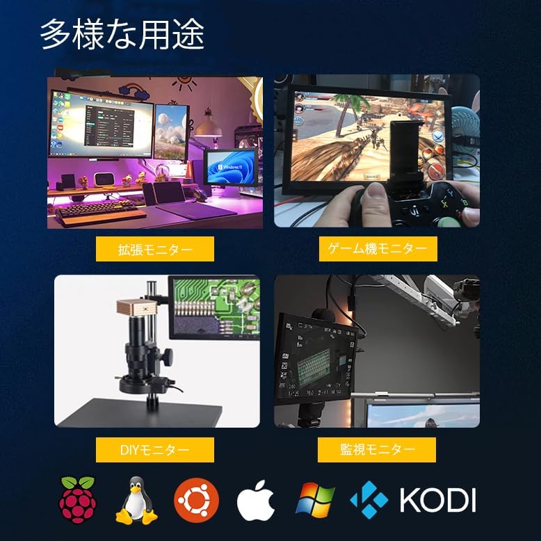 ポータブルディスプレイ モバイルバッテリー給電可能 HD 小型 1024 x 600P 内蔵スピーカー 監視モニター