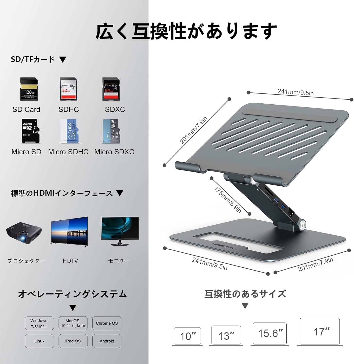 WAVLINK アルミ制の調整可能なノートpc用スタンド