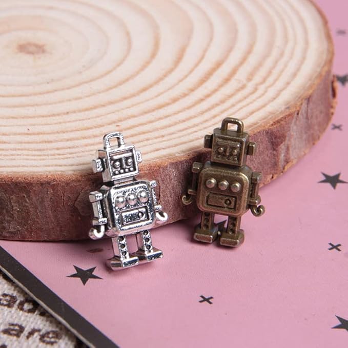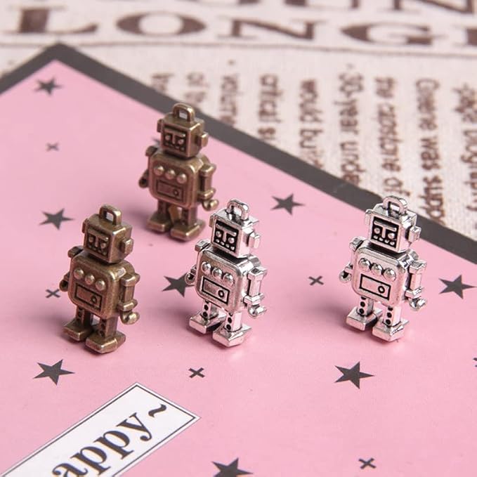 ロボットペンダント アンティーク シルバートーン 3D 12 x 16 mm メイキング DIY