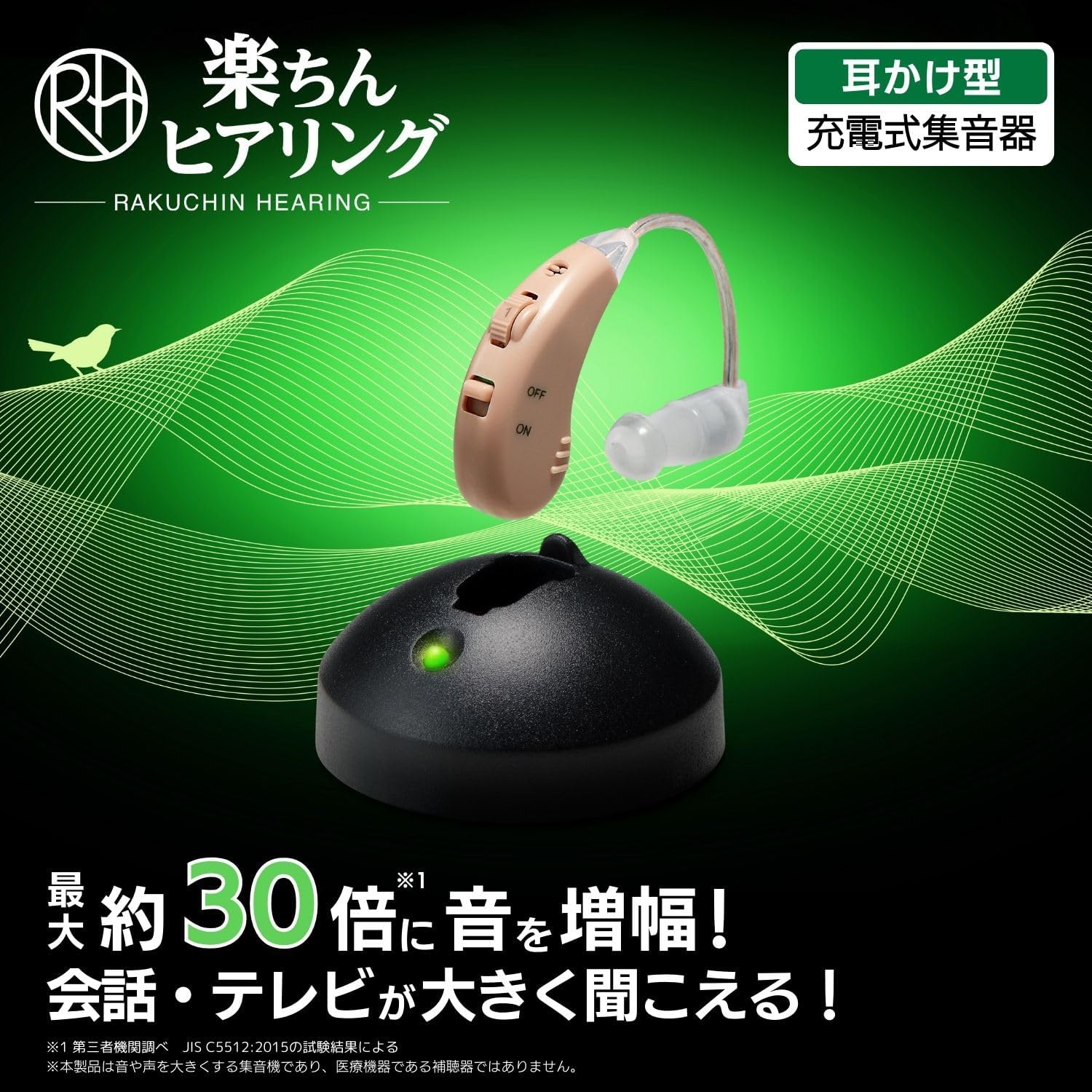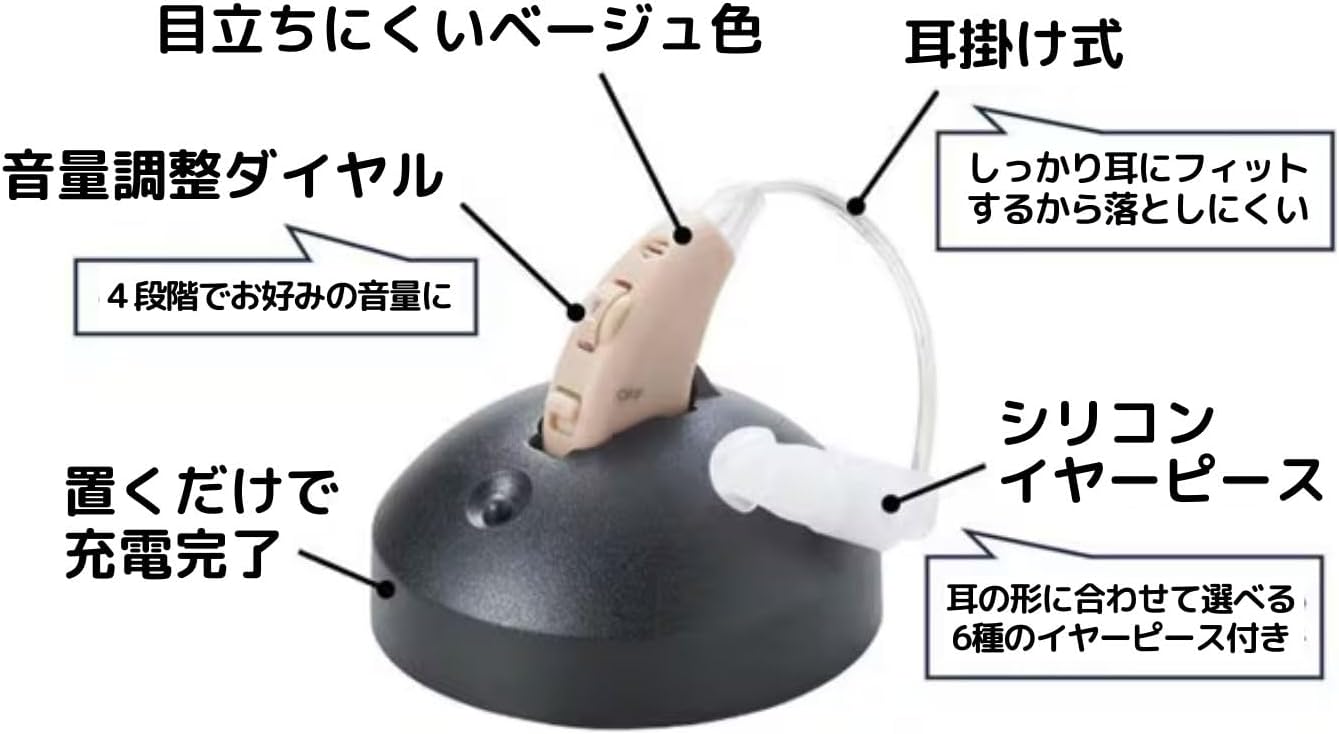 超軽量タイプ 目立たない 約30倍に音を増幅 4段階の音量調整 充電式で電池交換不要