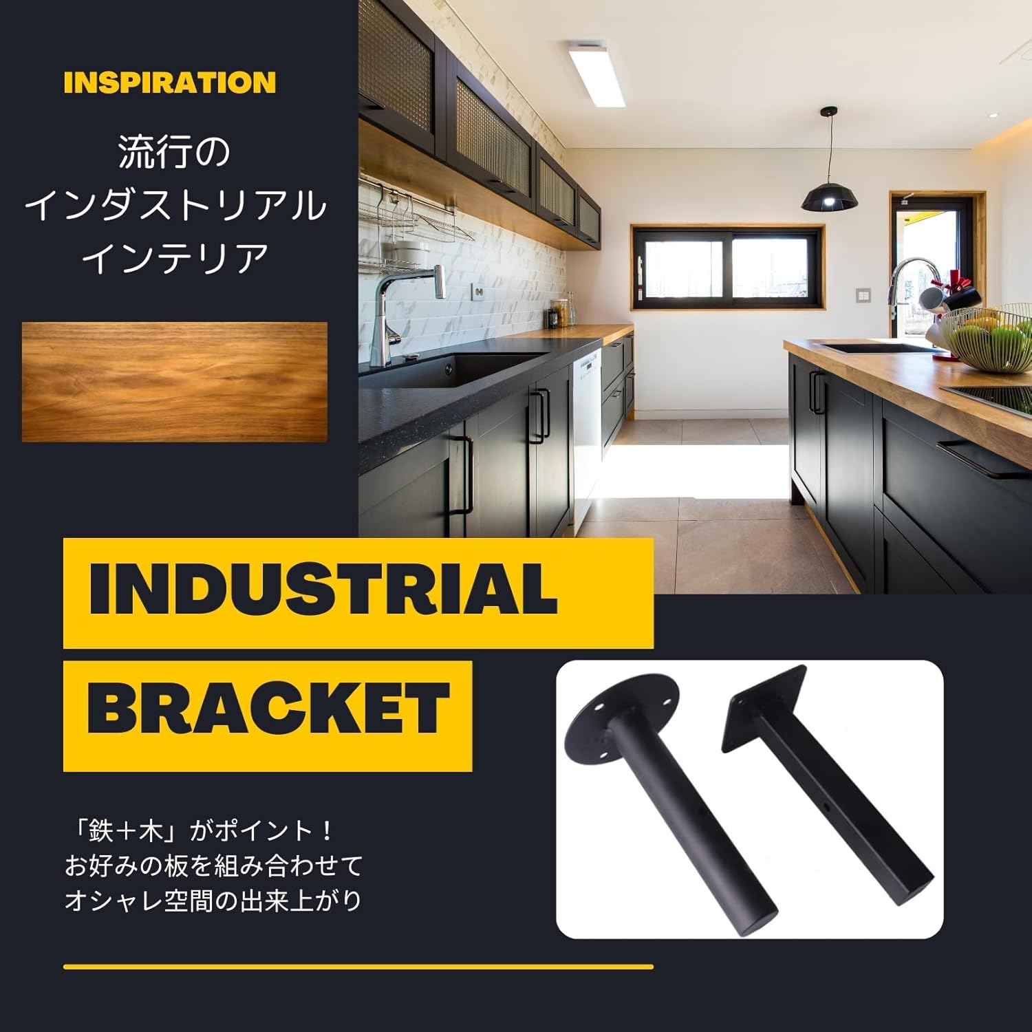 ブラケット DIY ビス付 アンティーク調 インダストリアル ブラック SW1450丸型(2個)25cm