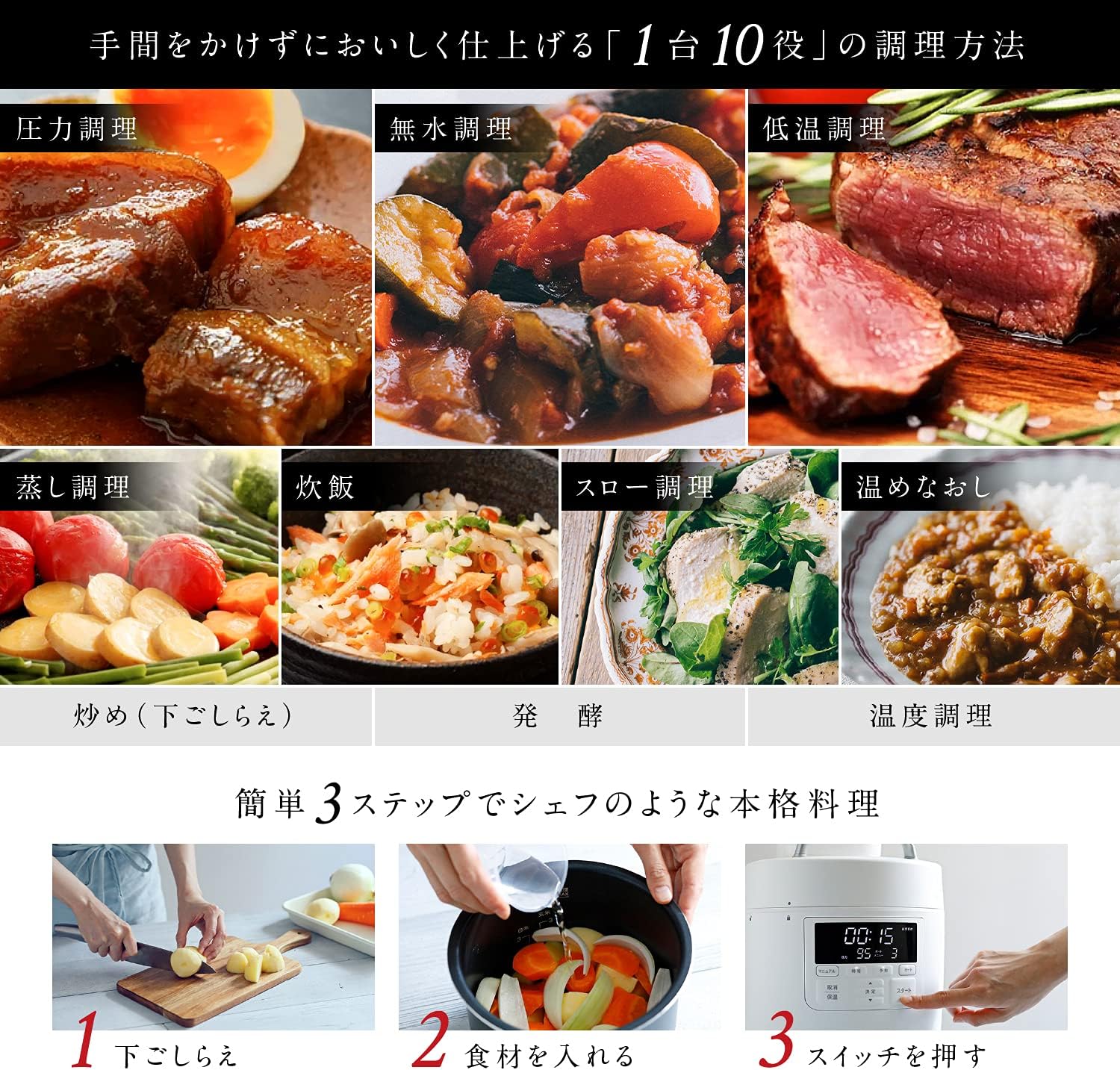 1台10役/レシピ本付き/かしこい予約プログラム/発酵/甘酒/電気圧力鍋