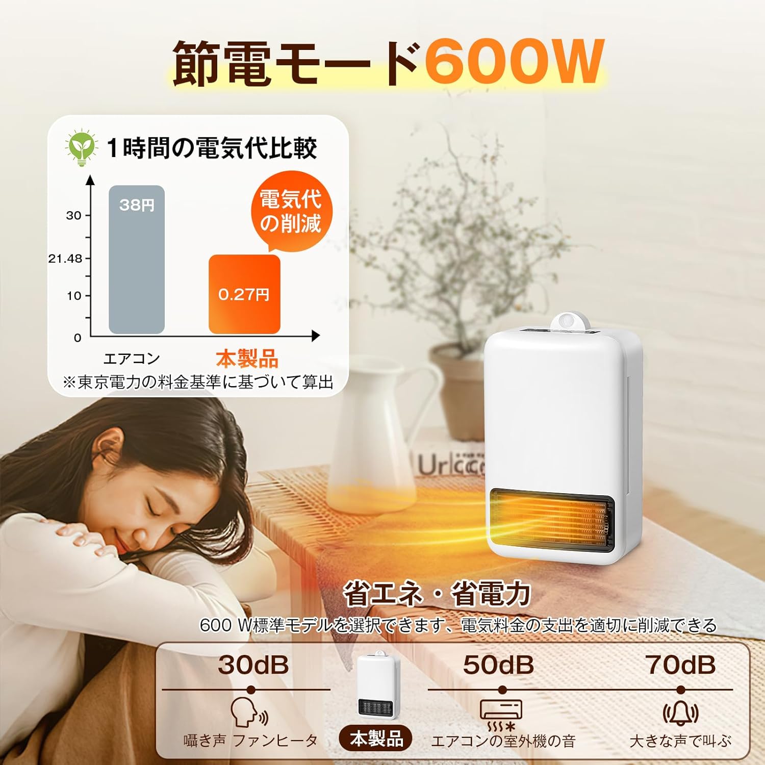 人感センサー付き マイナスイオン/空気清浄/静電気除去機能搭載 3段階温度切替