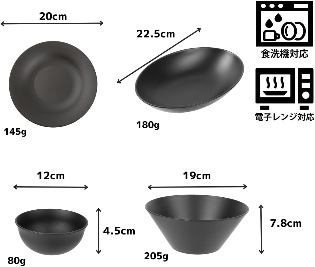黒 日本製 一人暮らし プラスチック 軽い 電子レンジ対応 食洗機対応 (ブラック)
