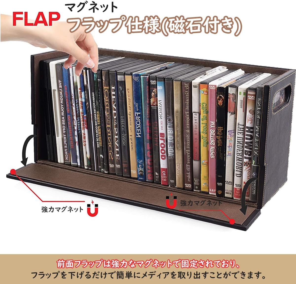 DVD 収納 ラック スリム CD/DVD/PS5ゲームソフト/ブルーレイ収納ボックス 【高級レザー製/強力マグネット付き/強化ハンドル付き/携帯便利/大容量/多機能】