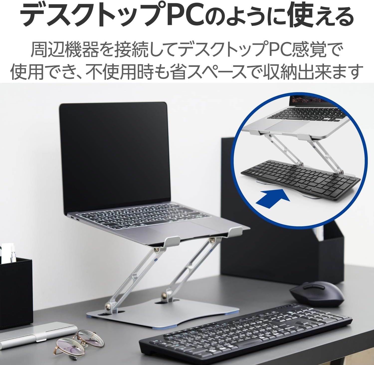 タブレットスタンド 角度高さ無段階調整 ~17.3インチ対応 キーボード収納可能