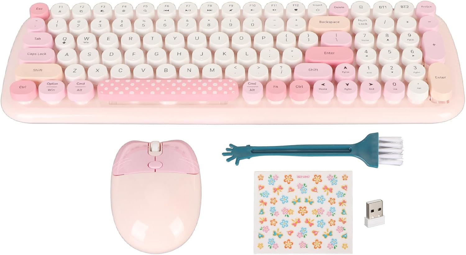 100キーフルサイズタイプライターキーボード、カラフルでかわいい丸いキーキャップ付き