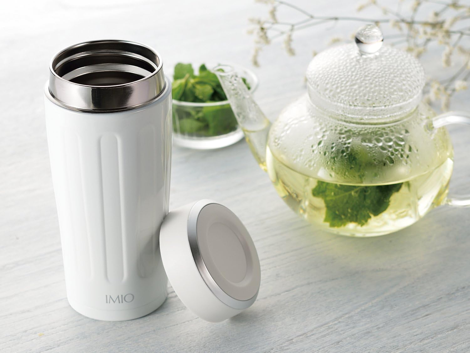 ホワイト 真空断熱ボトル 保温 保冷 マイボトル 大人 蓋付き IM-0001